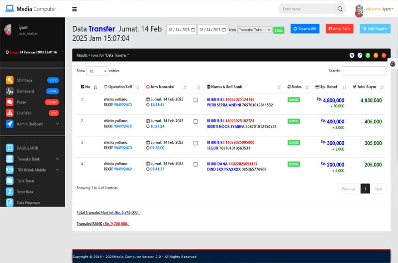 Catat transaksi transfer dan tarik tunai, pesan tugas pesan oline dan lain - lain